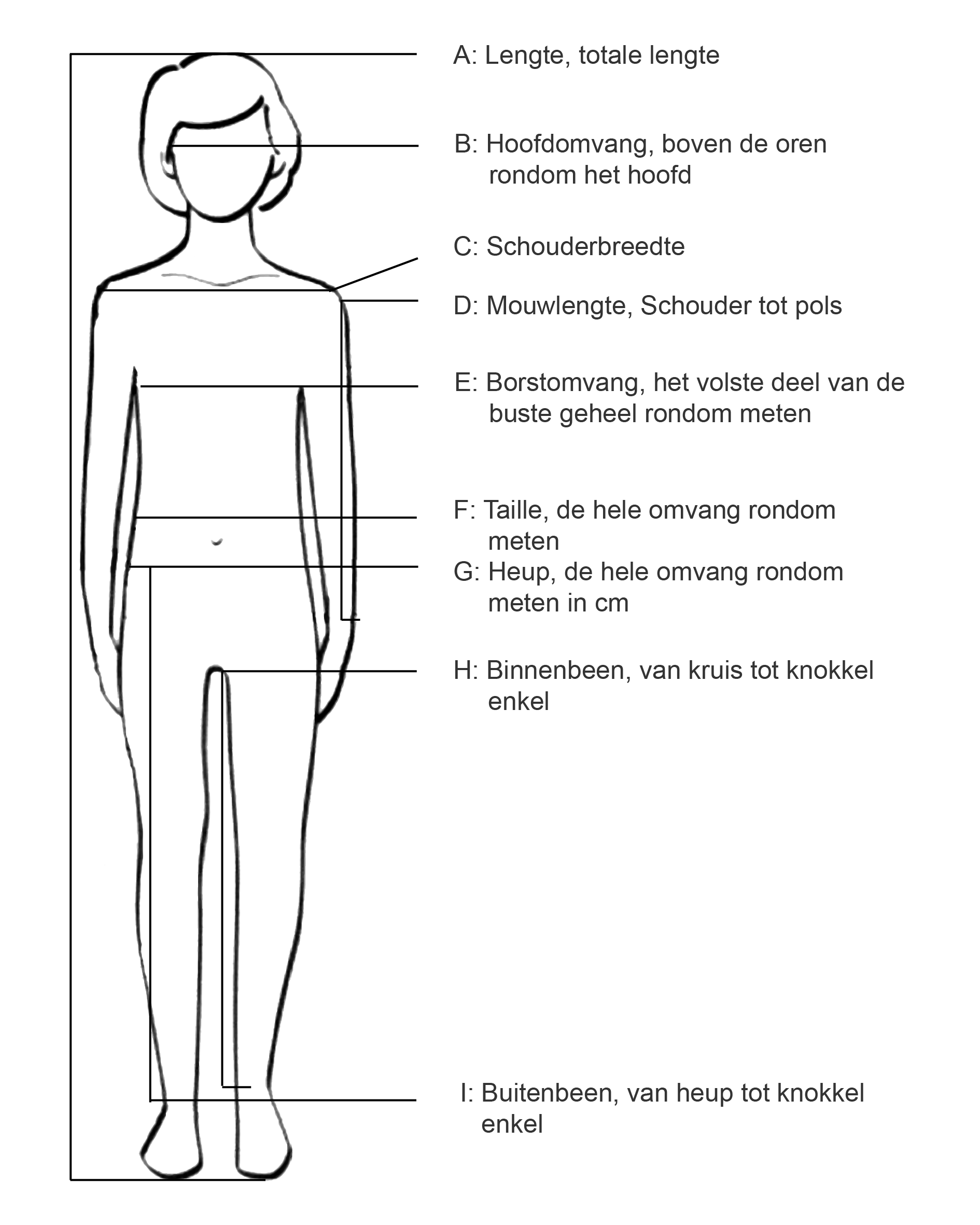 Graag volledig invullen en verzenden. De velden A t/m I in cm invullen. Vragen? bel gerust: 06-28889528 Naam Datum e-mail Telefoon Productie Rol Leeftijd Geslacht Geslacht Vrouw Man Kind Confectiemaat Confectiemaat505662687480869298104110116122128134140146152158164170 T-shirt T-shirtxssmlxlxxlxxxl4xl Jeans Jeans505662687480869298104110116122128134140146152158164170 Schoenmaat Schoenmaat161718192021222324252627282930313233343536373839404142 Bijzonderheden A: Lengte B: Hoofdomvang C: Schouderbreedte D: Mouwlengte E: Borstomvang F: Taille G: Heup H: Binnenbeen I: Buitenbeen 4 + 1 = Verzenden